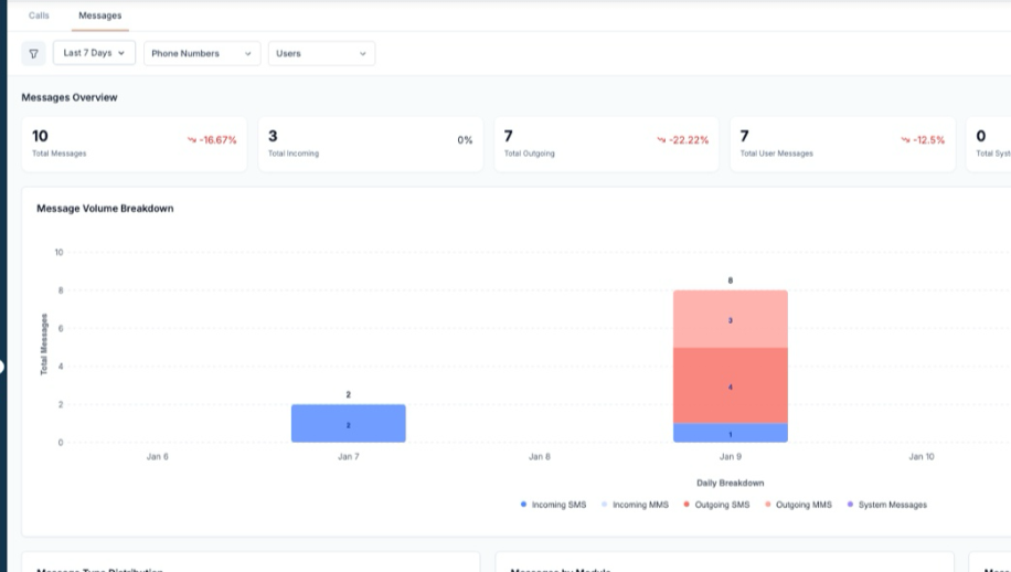 • Message insights across Text Message/MMS, inbound vs outbound & delivery status