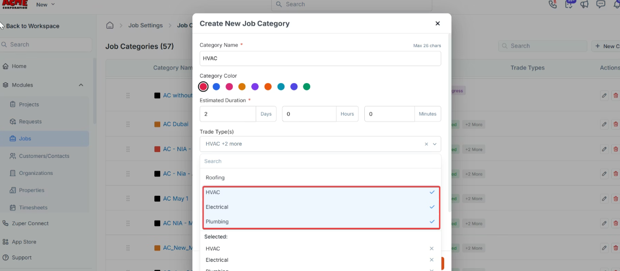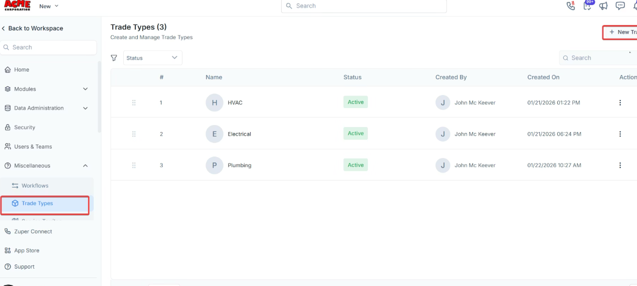 Note: Trade type is currently in Beta. Please reach out to your account manager or support@zuper.co to enable this feature.