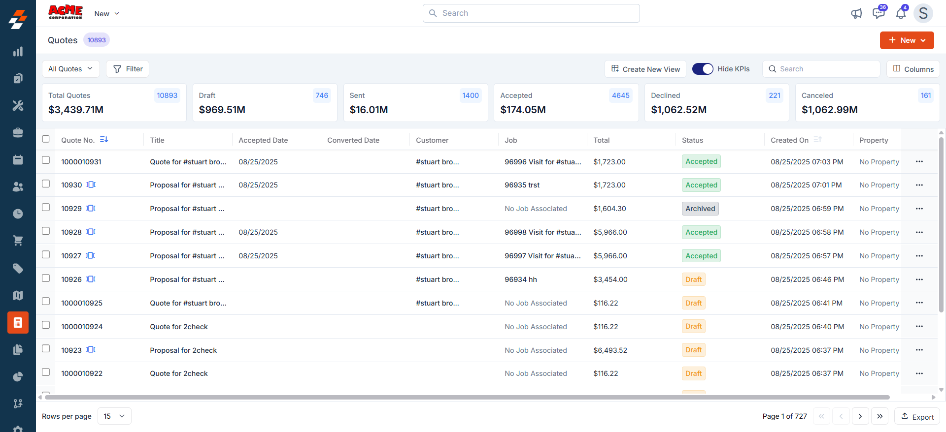 In addition, KPI metrics in Quotes and Invoices have been updated: